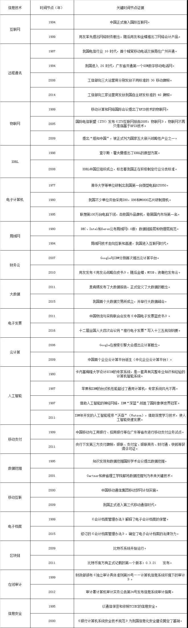 表6 会计信息化40年发展历程信息技术关键时间节点与证据