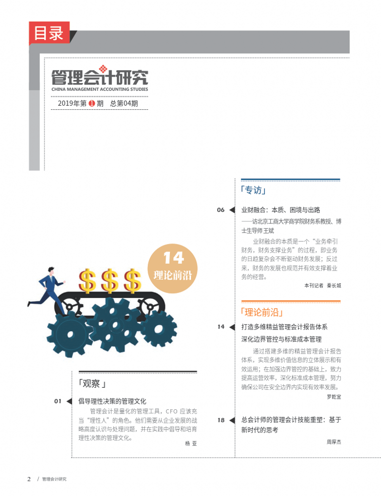 《管理会计研究》是一本以管理会计理论和实践创新为基础,专注新技术驱动数字化转型和新时代的业财融合,用案例启迪管理智慧的新锐权威学术期刊。
