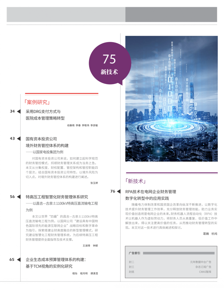 《管理会计研究》是一本以管理会计理论和实践创新为基础,专注新技术驱动数字化转型和新时代的业财融合,用案例启迪管理智慧的新锐权威学术期刊。