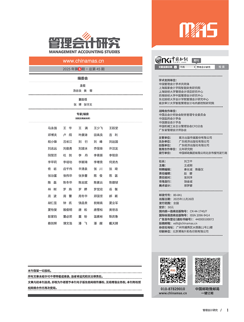 《管理会计研究》杂志为广东经济出版社主办的管理会计专业期刊,双月刊,单月份26日出刊,国内统一刊号:CN 44-1740/F。